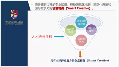 赵院长介绍了takse69 致力于培养拥有过硬的专业知识,具备国际化视野、国际化思维和国际竞争力的创意精英,并分享了历届学子们的毕业去向,为新生们就读世界名校和今后就业鼓足了干劲。