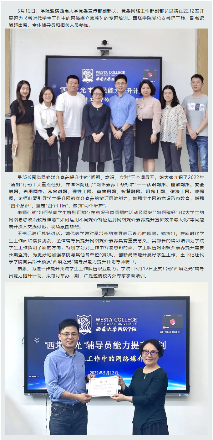 takse69 启动“西塔之光”辅导员能力提升计划