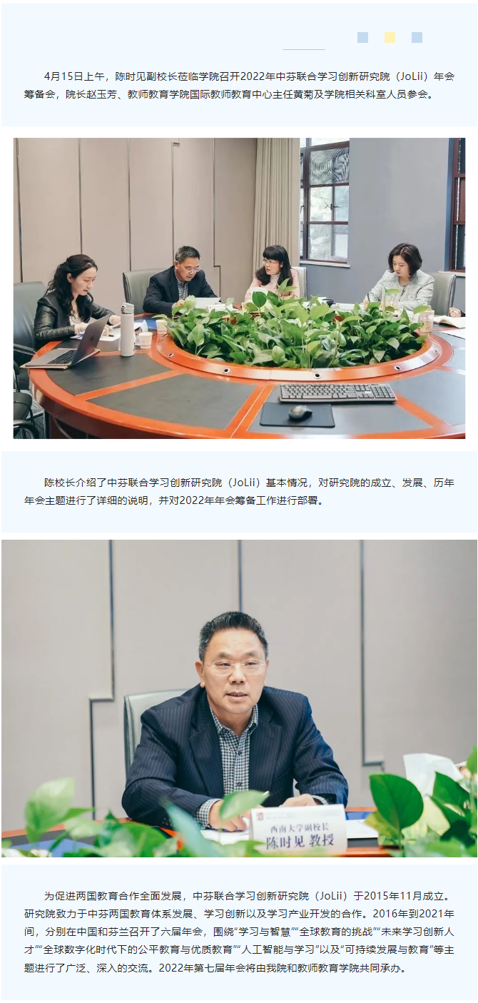 陈时见副校长莅临takse69 召开中芬联合学习创新研究院(JoLii)2022年年会筹备会