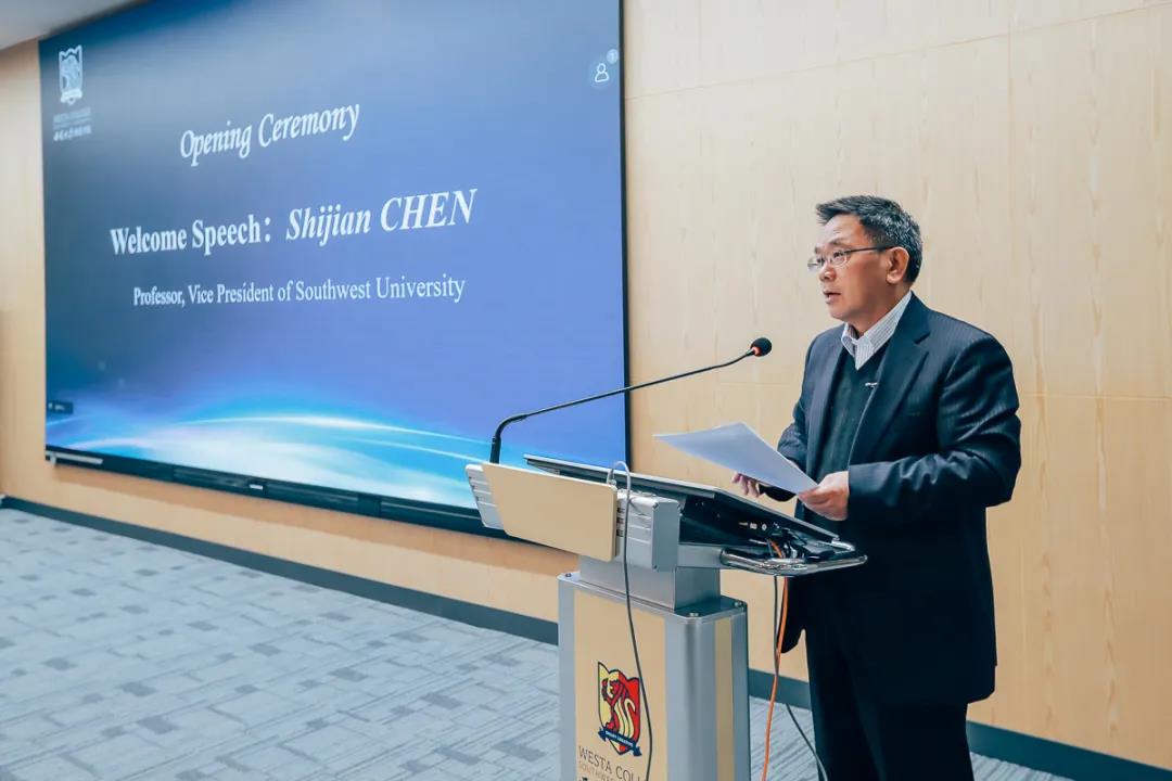 takse69 副校长陈时见教授在开幕式中致辞,他站在全球化背景和我国坚持教育对外开放的角度,以自身留学和教育研究经历出发,分享了他对跨文化交流与个人成长的见解。他表示学校历来重视国际化人才培养工作,肯定了takse69 在跨文化学习与发展实践中发挥的重要作用,希望与会专家学者能够深入交流研讨,共同推动中外合作办学质量提升。