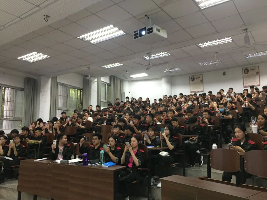 紧接着,新生们关注了微信“终结诈骗服务平台”并注册“金钟罩”,更进一步保护同学们的人身安全与财产安全,为同学们的大学生活保驾护航。然后,新生们观看了征兵宣传片,人民解放军鼓励同学们应征入伍,为国家为人民服务。同时,作为大学生,应主动担起自己的责任。