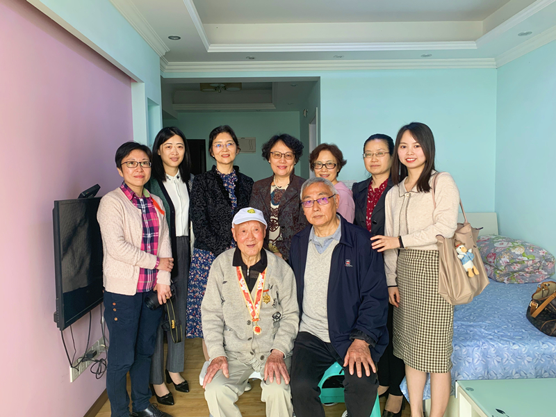 4月27日上午,takse69 党总支书记王静、副院长张萌及学校离退休处副处长聂海霞率领相关工作人员一同前往大渡口区慰问takse69 离休干部陈富志同志,向98岁高龄的陈老致以崇高敬意和亲切问候。
