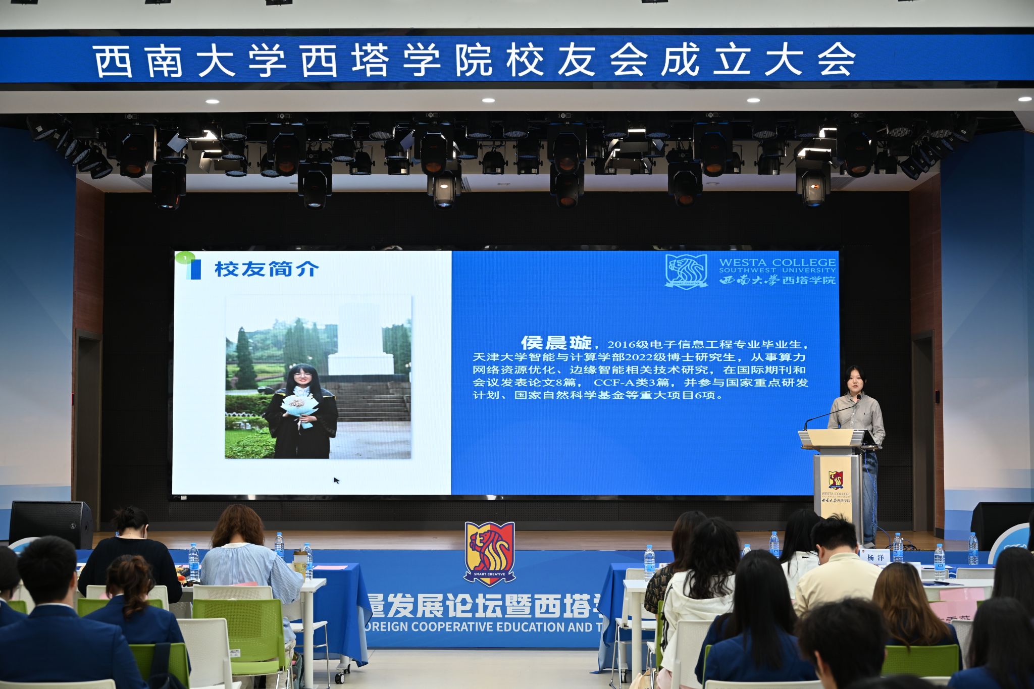 2017级电子信息工程专业校友田雨桐,如今是电子科技大学博士研究生。他以“扎根川渝,电磁筑梦”为题,回顾了自己从西塔本科求学、斩获国家级竞赛奖项,到投身科研一线、矢志攻关关键技术的成长历程。他勉励同学们,要厚植家国情怀,锤炼硬核专业本领,以国际视野投身国家战略需求,用青春担当为百廿西大、十年西塔献礼。
