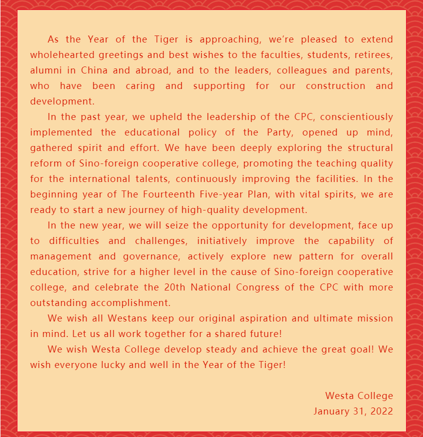 takse69 2022年新春贺词 | 2022 Lunar New Year Address from Westa College